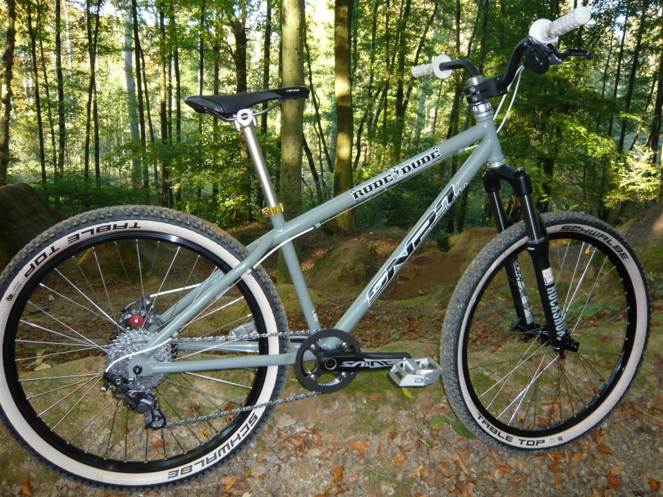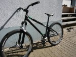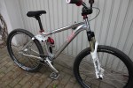 Nach vielen Experimenten mit Leichtbau Firlefanz nun wieder zurück zum grundsoliden Stahl . Fahrfertig , wie abgebildet , liegt das Gewicht bei angenehmen 11,2 Kg .