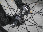 Die zweite Ausbaustufe beinhaltet: verstellbarer Vorbau, Federsattelstütze, 3- statt 2-gang Nabe, hochwertiges und edles 3-speichiges Echtcarbon-GT spin Vorderrad (sponsored by WatzUp Oberhausen Fahrradgeschäft) und die aufwändig selbstgebaute Hinterrad-Verkleidung. Dazu kamen die ultraleichten, ultraschnellen und komfortablen furiosen Freds von Schwalbe in der nicht mehr erhältlichen 2,4er Breite.